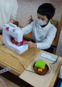 カーブも慎重に縫うことができ、ミシン練習の成果があらわれていました。