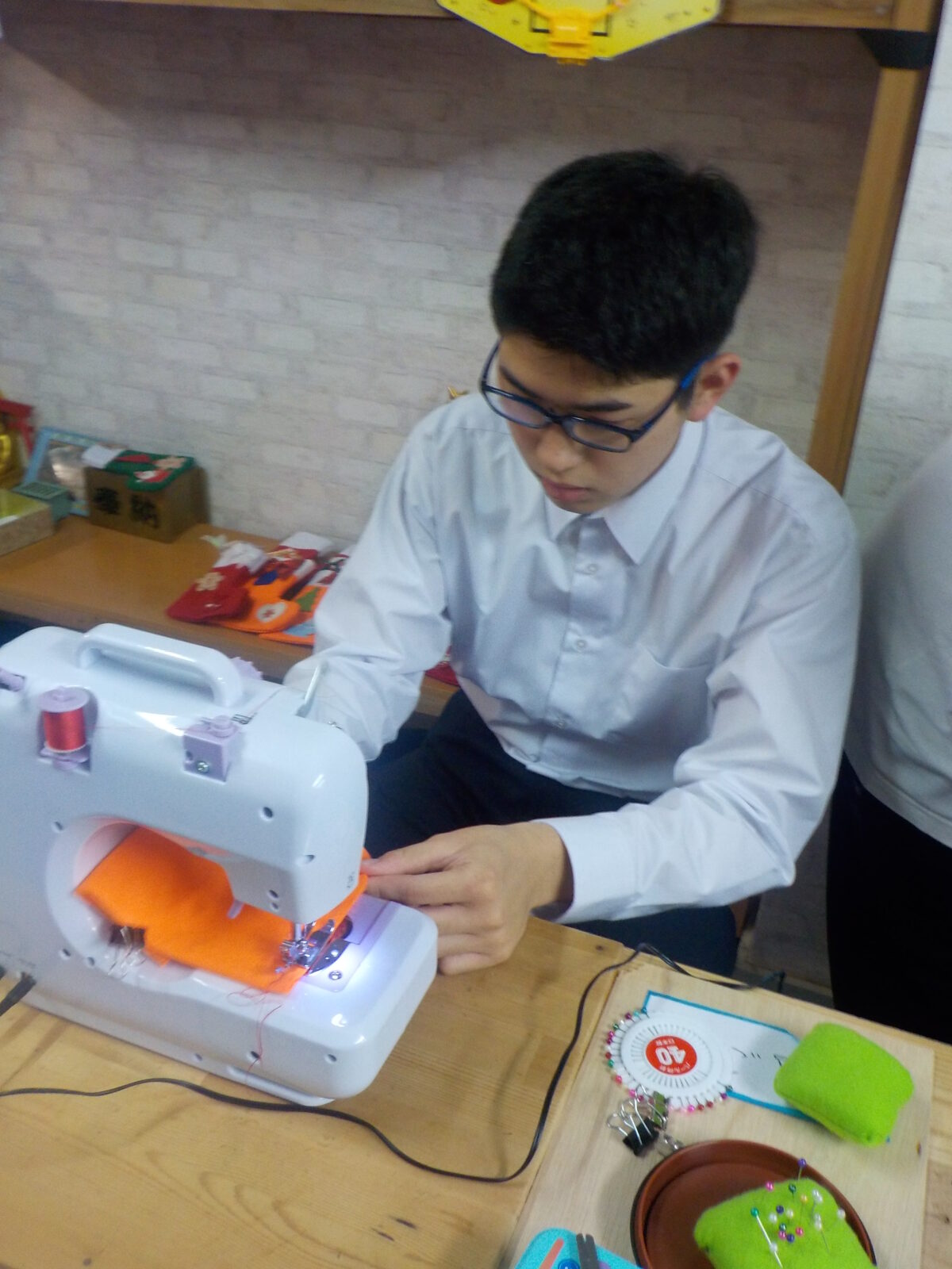 カーブも慎重に縫うことができ、ミシン練習の成果があらわれていました。