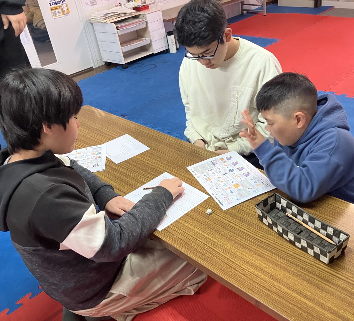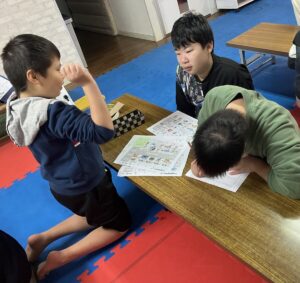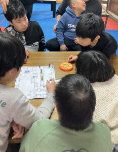 三班に分かれ、行事カレンダーやブログの写真を見ながら人生ゲームを作っていきました。