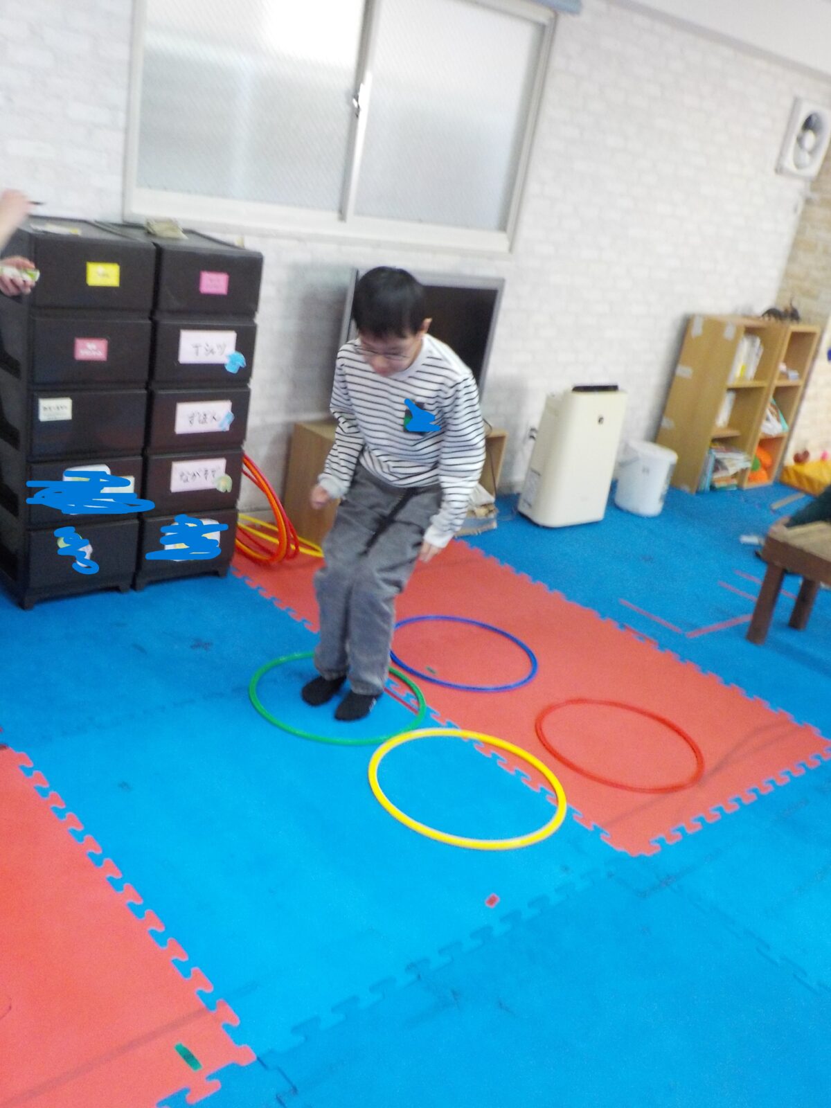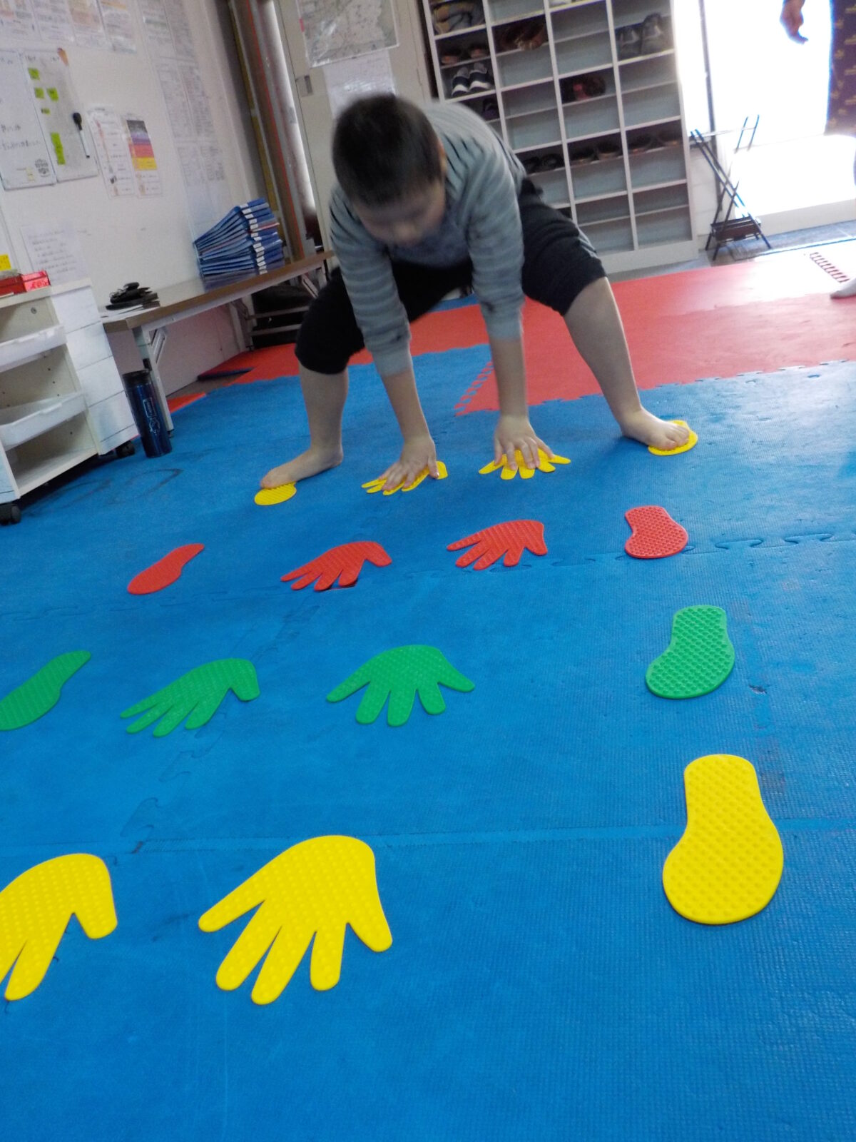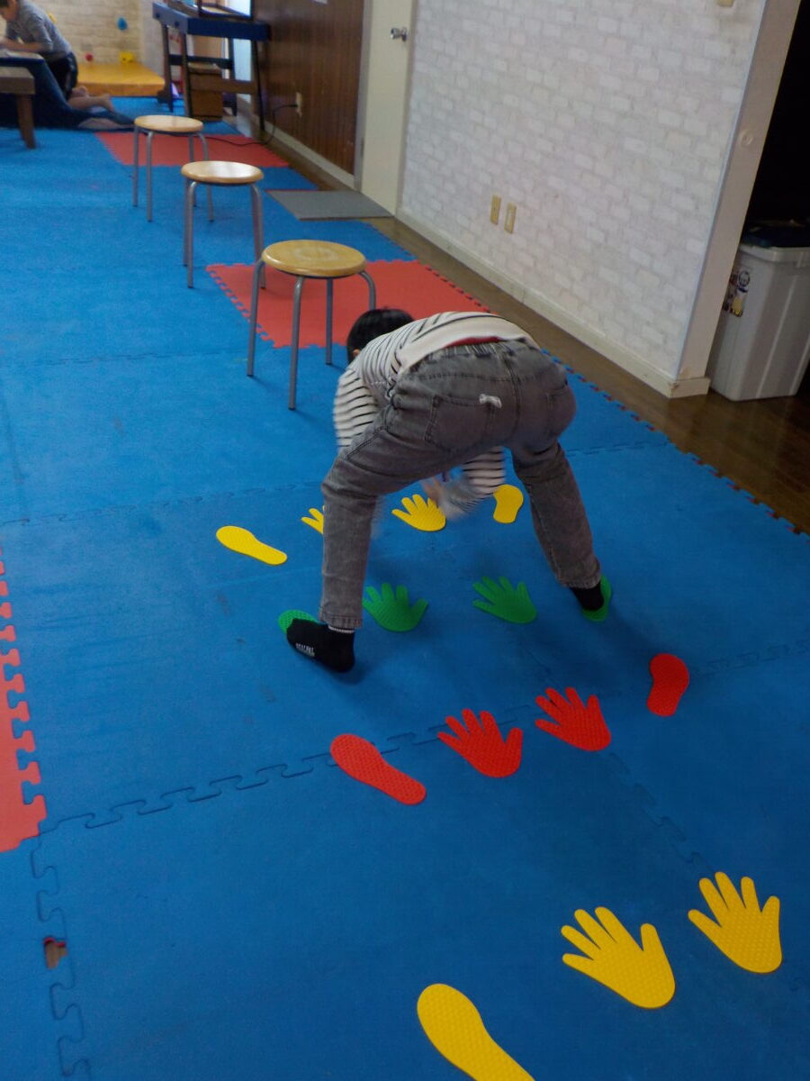 なかなかそろって飛ぶのは難しかったようでその練習のために両足🦵を揃えて指定された色に着地をする色分けジャンプもしてみました🦘