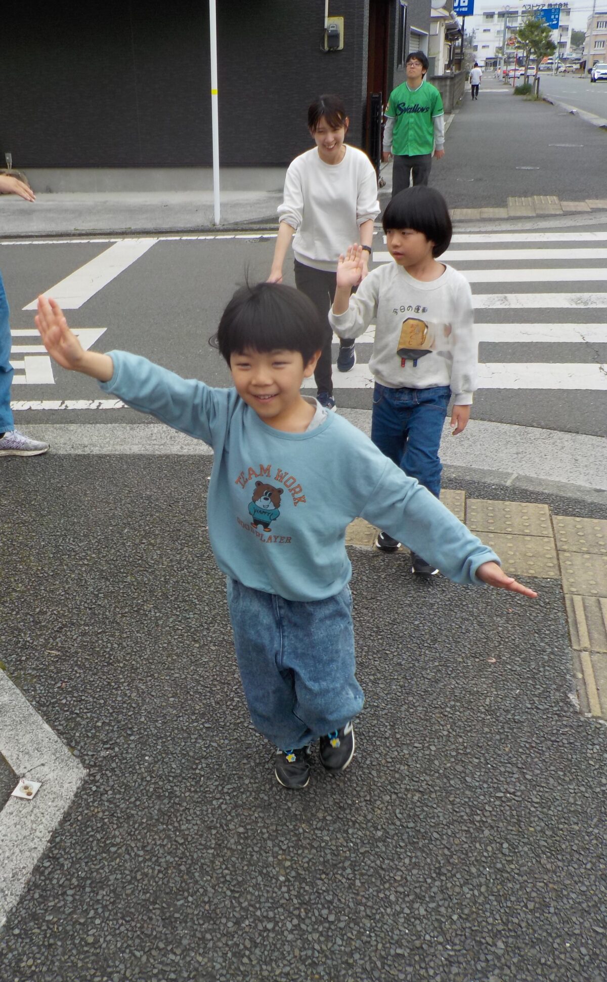 🚗交通安全ルール🚥 日々の様子 2026.04.17 春の交通安全運動が始まっていますね(*^▽^*) こどもプラスでも交通安全ルールについて話し合いました。 クイズ形式でルールを学び、外に出て実践しました。 信号が青でも必ず左右確認すること、 交差点では自転車やバイクが来ると思って立ち止まって確認することなど、 歩きながらチェックポイントを確認しました。 「横断歩道を渡る時に、大人は手を挙げてないのはなんでかな?」と、ドキリとする質問も出ました💦 「大人も手を挙げよう」ですね(>人<;)
